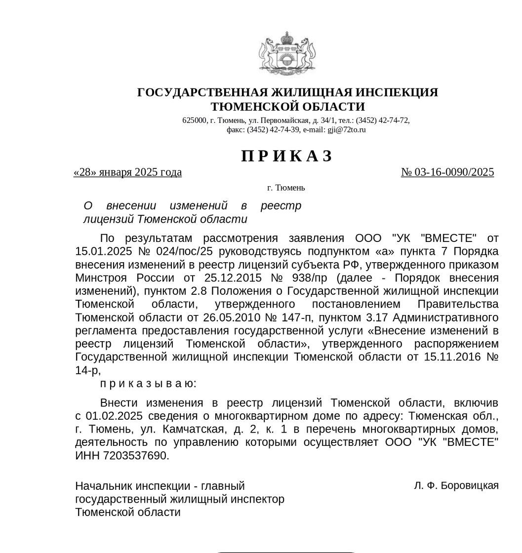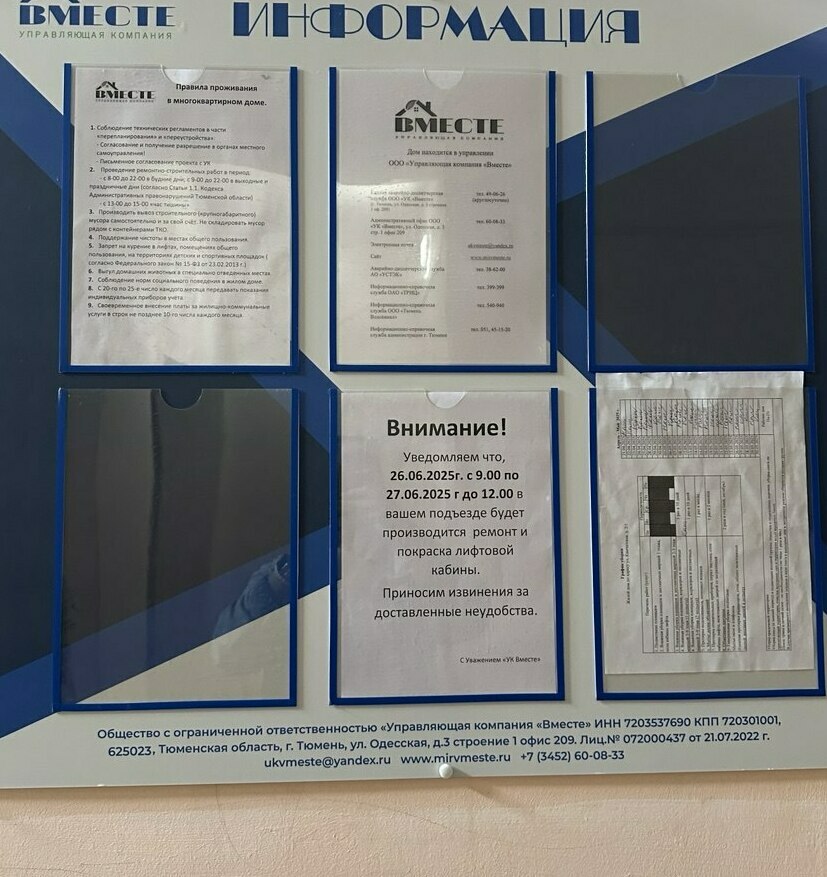 Жилой дом по адресу: г. Тюмень, ул. Камчатская, д. 2 корпус 1 перешел в Управляющую компанию "Вместе" с 1 февраля 2025 года. Мы провели работы: